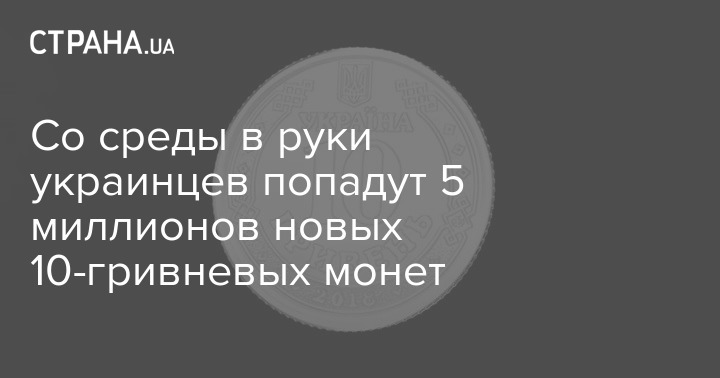 Со среды в руки украинцев попадут 5 миллионов новых 10-гривневых монет