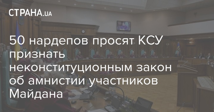 50 народных депутатов Украины, в частности вся фракция "Опозиционной платформы За жизнь" (ОПЗЖ), направила представление в Конституционный суд Украины (КСУ) относительно соответствия Конституции закона об амнистии участников протестов на Майдане в 2013-2014 годах.