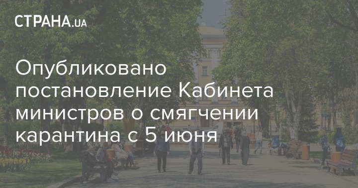 В Кабинете министров Украины обнародовали постановление №435 о внесении изменений в постановление №392 от 20 марта 2020 года, которое вносит послабление карантинных ограничений с 5 июня