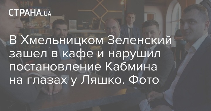 В Хмельницком Зеленский зашел в кафе и нарушил постановление Кабмина на глазах у Ляшко. Фото