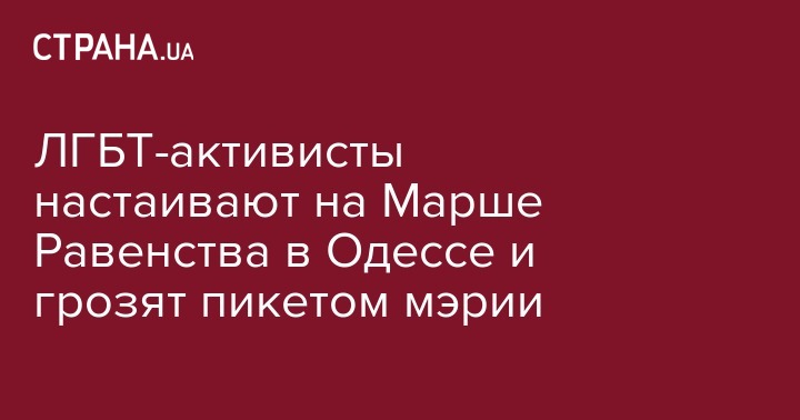 ЛГБТ-активисты настаивают на Марше Равенства в Одессе и грозят пикетом мэрии