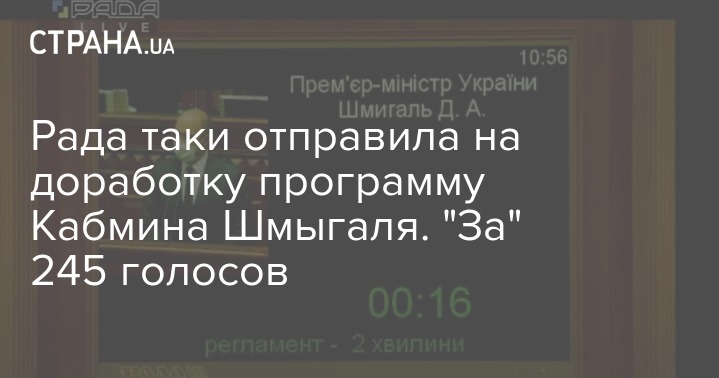 Сегодня, 4 июня, Верховная Рада Украины таки отправила на доработку программу Кабмина премьера Дениса Шмыгаля. За это решение проголосовали 245 народных депутатов.