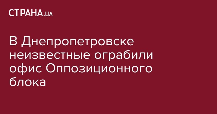 В ночь на 12 августа, в 3:50, в Днепре был взломан и ограблен офис партии "Оппозиционный блок". Об этом сообщается на официальном сайте партии.