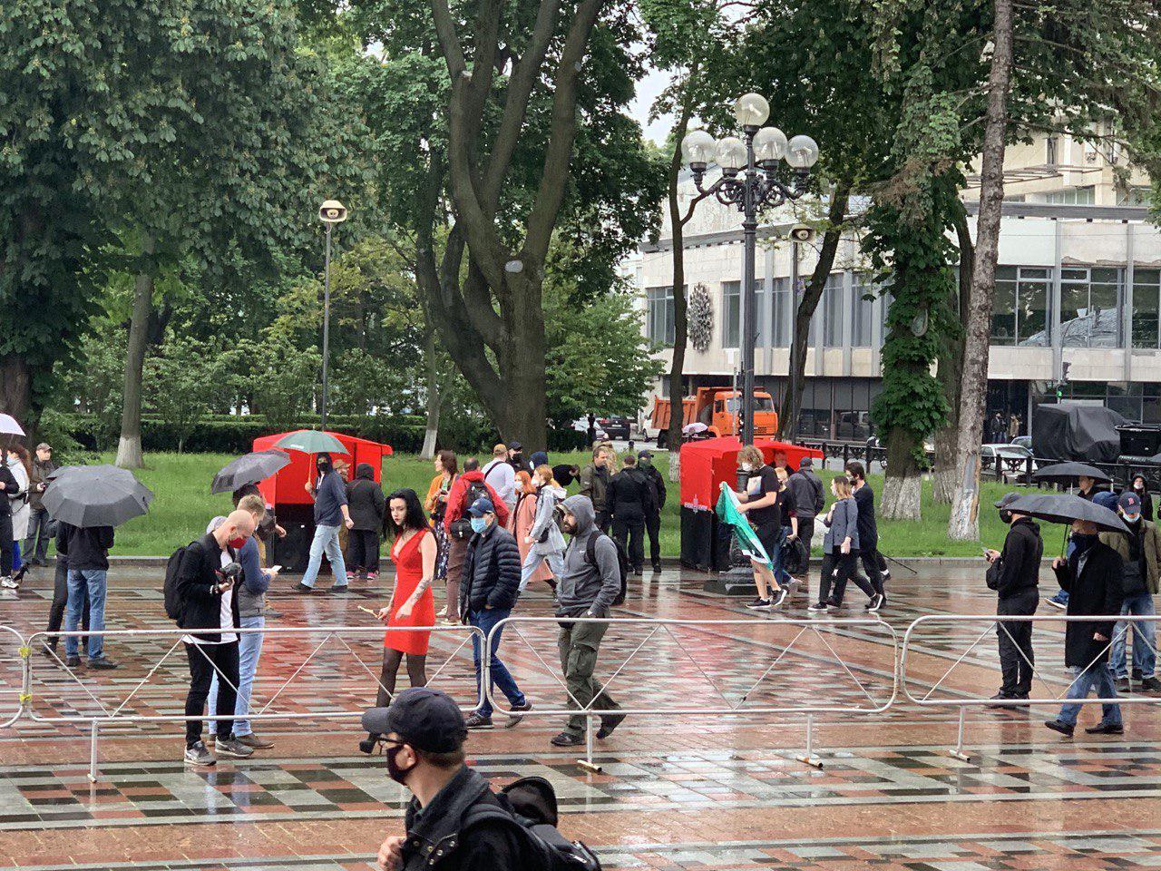 08:30 По состоянию на 8:30 активистов меньше чем полиции, которая также патрулирует в Мариинском парке.