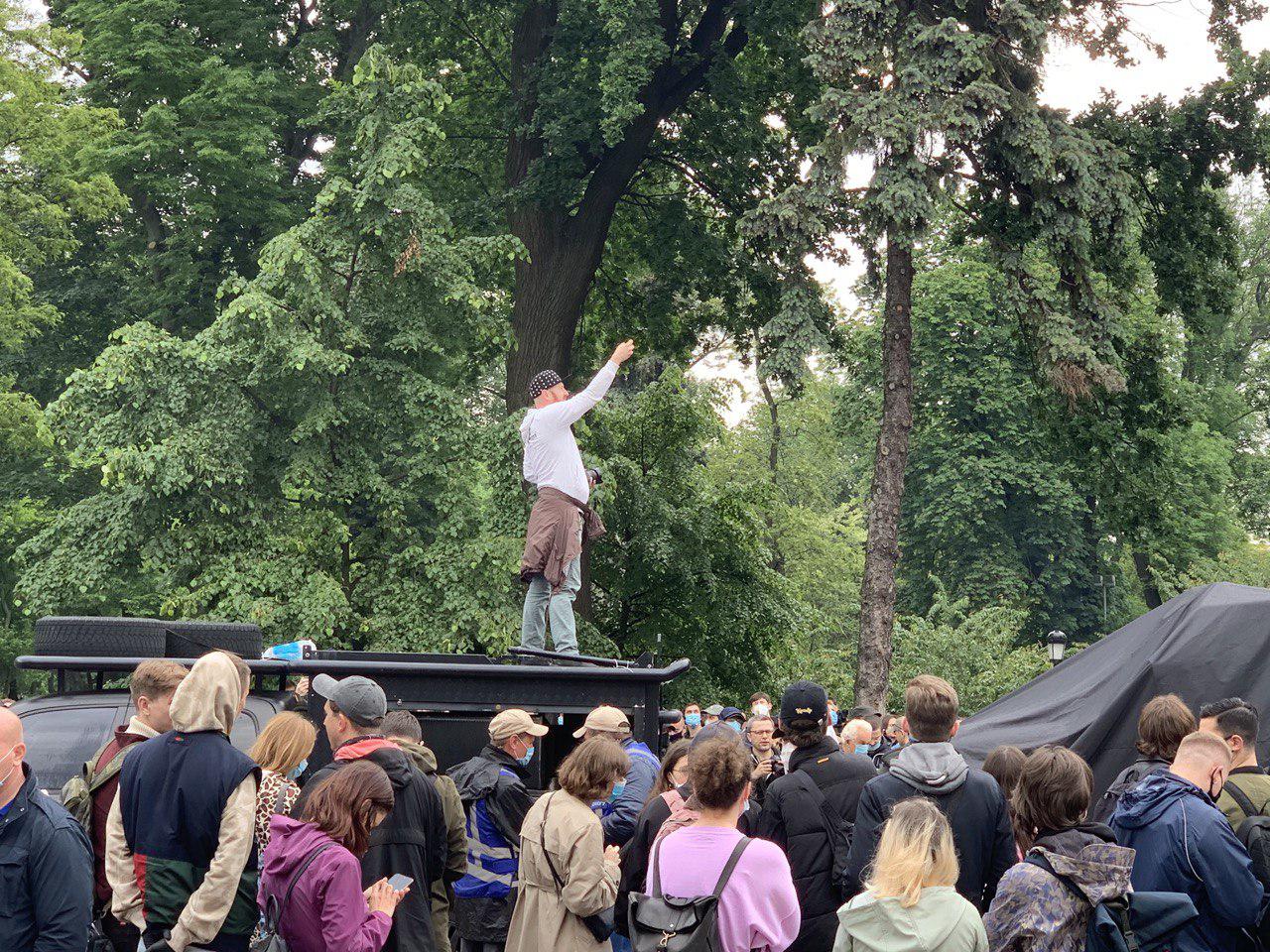 09:48 К митингующим пришел депутат "Слуги народа" - Евгений Шевченко. Ранее депутат эмоционально выступил в Раде за отставку Авакова