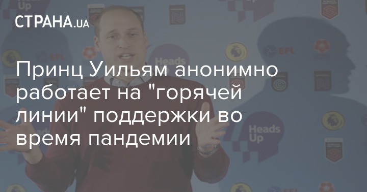 "Британский принц Уильям рассказал, что он анонимно работает волонтером горячей линии, созданной в кризисный период во время карантина на фоне пандемии коронавируса", - говоится в сообщении.