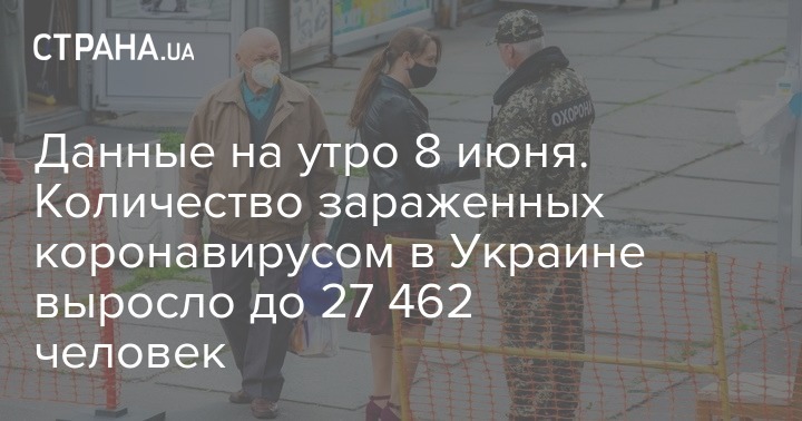 Данные на утро 8 июня. Количество зараженных коронавирусом в Украине выросло до 27 462 человек