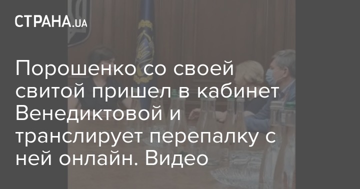 Порошенко со своей свитой пришел в кабинет Венедиктовой и транслирует перепалку с ней онлайн. Скриншот из видео