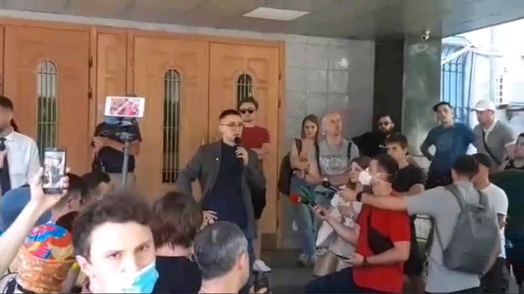 Стерненко вышел из СБУ с уверенным видом, обратился к представителям СМИ с просьбой, если что, запикать следующие его слова и произнс: "Они заеб@ли". После чего в толпе раздались аплодисменты.