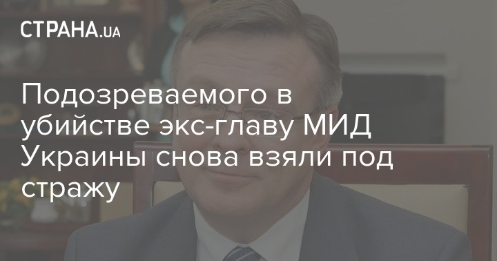 "Бывшего главу Министерства иностранных дел Украины, который подозревается в умышленном убийстве, возвращено в места содержания под стражей. По принципиальной позиции прокуратуры Киевской области, бывшего главу Министерства иностранных дел Украины - подозреваемого в убийстве - вернули в место содержания под стражей с определением предыдущего размера залога - 14 083 млн грн", - указано в сообщении.