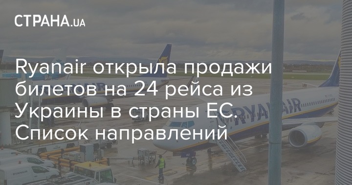 Крупнейший в Европе лоукостер Ryanair, который ранее объявил о возобновлении полетов из Украины в Италию, открыл продажи билетов на 24 рейса из Украины в страны Евросоюза.