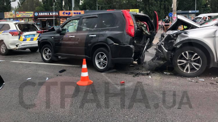 Сегодня, 14 июня, на Окружной трассе около супермаркета "Новус" в Киеве произошло масштабное ДТП с участием сразу трех автомобилей, одним из которых оказалось патрульное авто полиции.