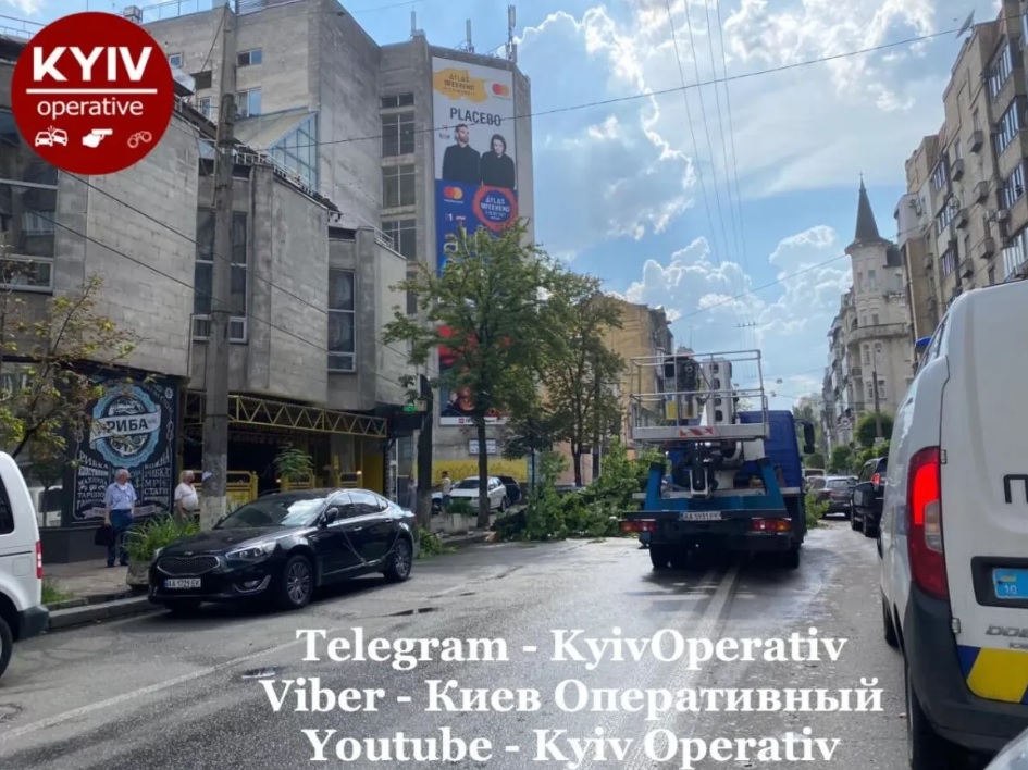 В понедельник, 15 июня, стихия в центре Киева повалила несколько деревьев и повредила припаркованные под ними авто.