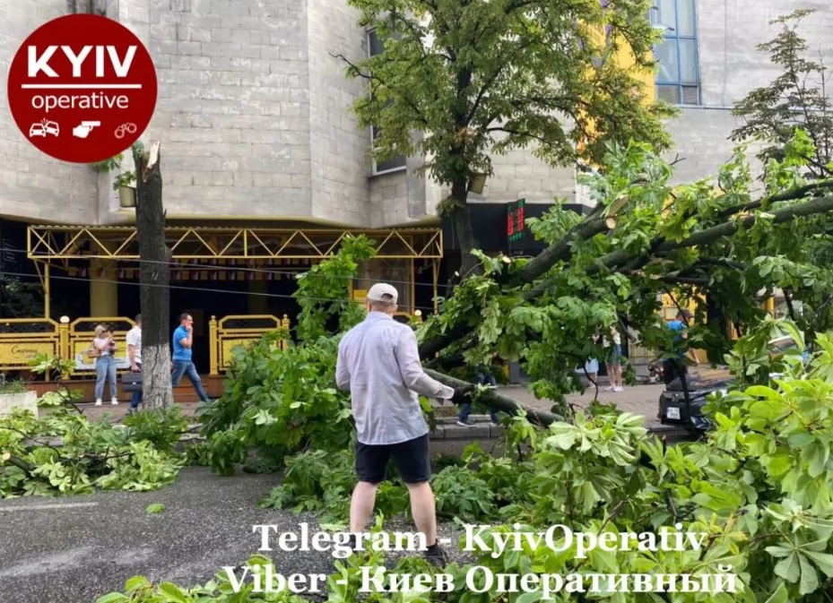 Появились фото и видео, как в центре Киева от непогоды падали деревья и плавали машины