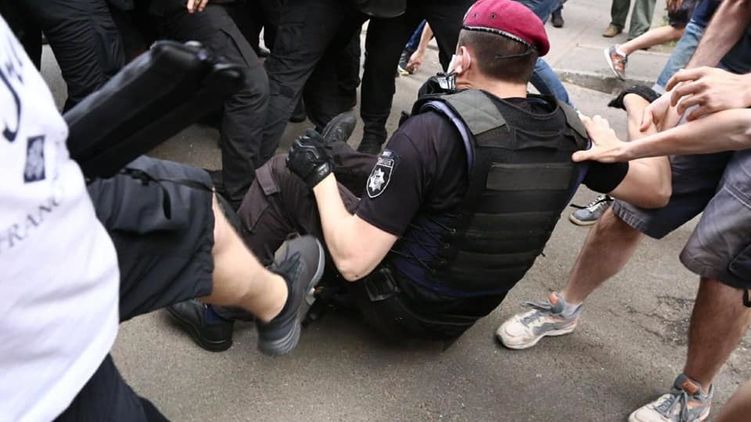 Радикалы из массовки Стерненко нападают на полициюНа полицейском рвут одежду