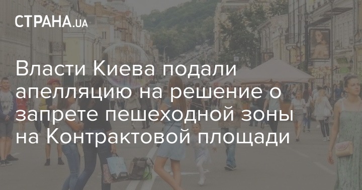 Власти Киева подали апелляционную жалобу на решение Окружного административного суда, который признал противоправными и отменил распоряжения КГГА о создании пешеходной зоны на Контрактовой площади и улице Сагайдачного.