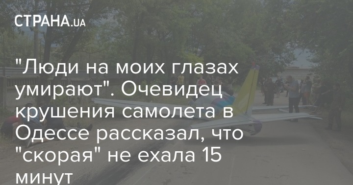 Александр Николов, очевидец крушения легкомоторного самолета, которое произошло 17 июня в Одессе, сообщил, что "скорая", которую вызвали для оказания помощи пилотам, не приезжала к месту трагедии в течение 15 минут.