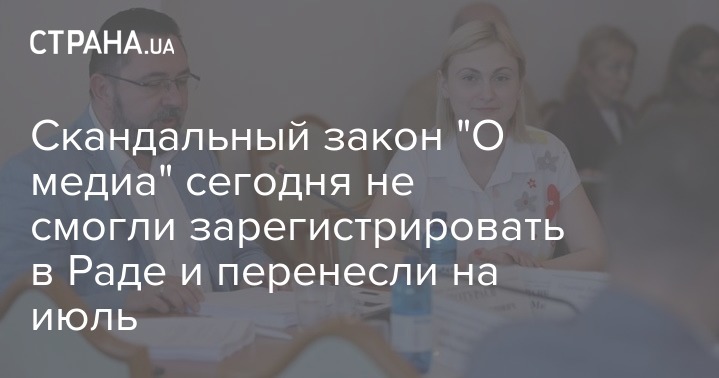 Рассмотрение обновленной редакции скандального законопроекта о медиа отложили на 1 июля. Об этом на своей странице в соцсети написала нардеп от "Слуги народа" Евгения Кравчук.