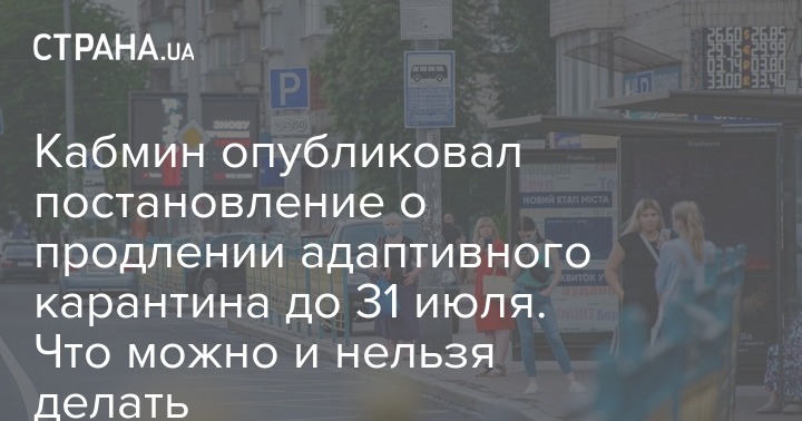 Кабмин опубликовал постановление о продлении адаптивного карантина до 31 июля. Что можно и нельзя делать