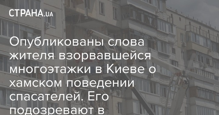 Опубликованы слова жителя взорвавшейся многоэтажки в Киеве о хамском поведении спасателей. Его подозревают в провокации