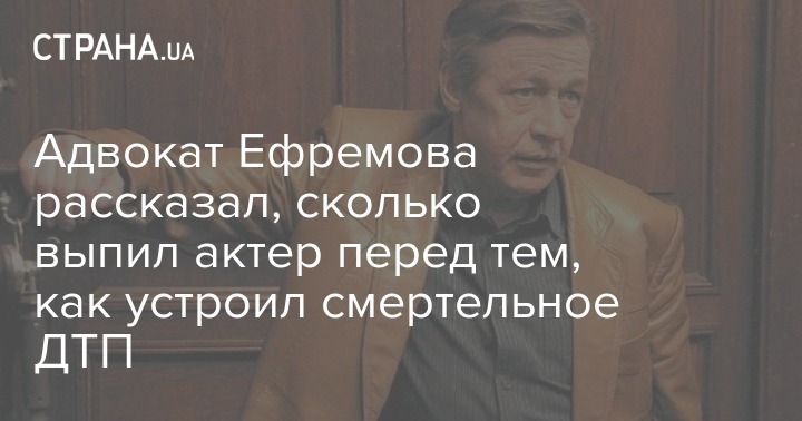Актер Михаил Ефремов, который устроил в Москве масштабное смертельное ДТП, выпил более трехсот граммов водки перед тем, как сесть за руль.