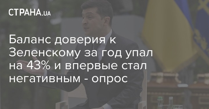 Баланс доверия к президенту Владимиру Зеленскому за год опустился с +34,1% до -8,9%, став впервые негативным с момента его победы на выборах президента.
