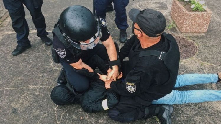 В результате столкновений есть задержанные среди "Нацкорпуса" и пострадавший. Им оказался начальник управления патрульной полиции Ровенской области.