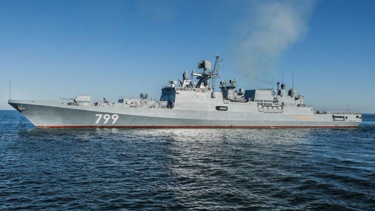 Российский фрегат "Адмирал Макаров" с крылатыми ракетами на борту идет в Средиземное море