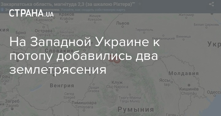 В четверг, 25 июня, на Закарпатье, помимо потопа, были зафиксированы два землетрясения. Их толчки пока оказались не очень сильными и практически незаметными для людей.