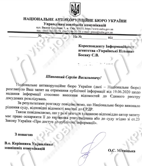 Сначала НАБУ отказалось открыть дело, но суд обязал бюро начать расследование.