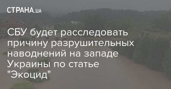 Уголовное дело по статье "Экоцид" открыла Служба безопасности Украины по факту катастрофических наводнений на западе страны, которые привели к разрушениям. Об этом спецлужба сообщает на своей странице в соцсети.