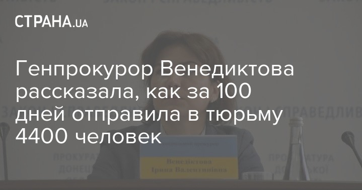 Генеральный прокурор Украины Ирина Венедиктова рассказала, что за 100 дней, пока она на должности прокурора, тысячи людей посадили по делам прокуратуры. При этом она признала, что среди них нет топ-коррпционеров, но обещает им приговоры в будущем.