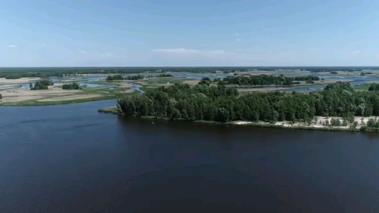 На кадрах видны типичные ландшафты украинского Полесья с высоты птичьего полета с их пойменными лугами, островами, густыми лесами и полянами.