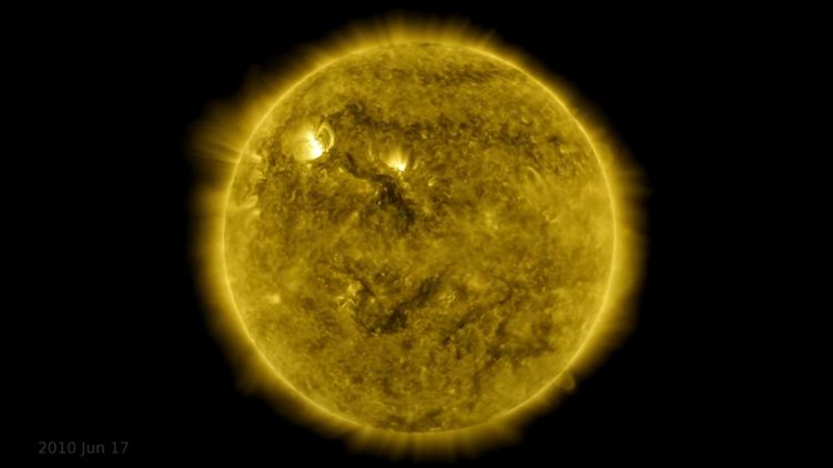 Если внимательно присмотреться, на видео заметны несколько моментов  с темными кадрами. Их появление связано с тем, что Земля или Луна затмевали собой Солнце от орбитальных аппаратов SDO. А в 2016 году один из аппаратов вышел из строя на неделю, из-за чего экран темнее на довольно продолжительное время.