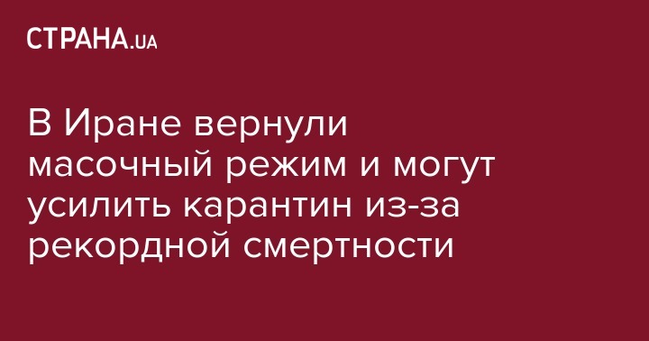 В Иране снова вводят масочный режим из-за того, что в стране увеличился показатель смертности от коронавируса. Маски будут обязательными в закрытых помещениях. За сутки 27 июня умерли 144 человека.