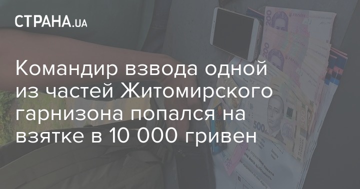 Командир взвода связи одной из воинских частей Житомирского гарнизона попался на взятке в 10 000 гривен. Теперь ему грозит до 10 лет тюрьмы.