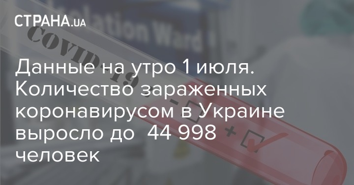 По состоянию на утро среды, 1 июля, количество зараженных коронавирусом в Украине выросло до 44 998 человек. Днем ранее, 30 июня, зараженных Covid-19 было 44 334 человека. За сутки болезнь подтвердилась еще у 664 граждан.