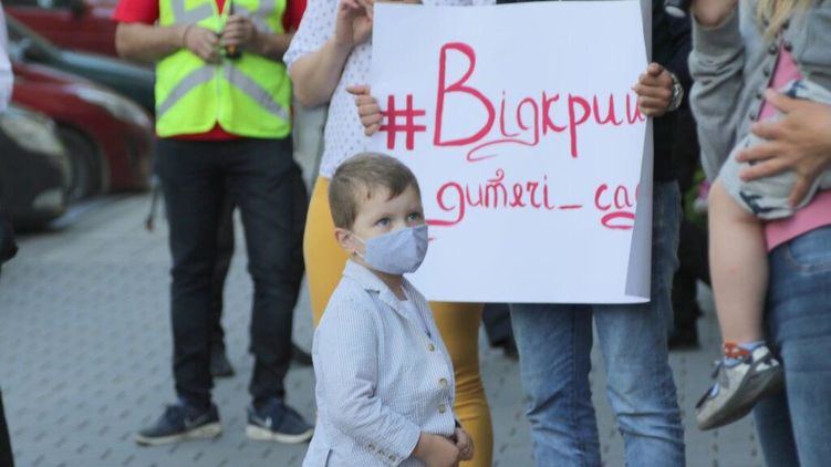Во Львове, возле здания областной госадминистрации, прошел митинг за возобновление работы детских садов в условиях карантина.