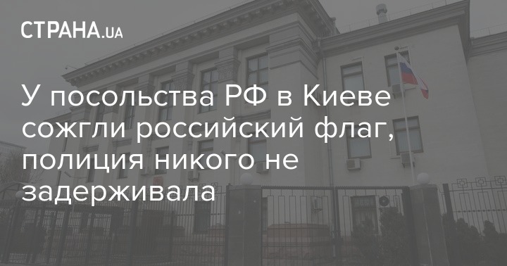 У посольства РФ в Киеве сожгли российский флаг, полиция никого не задерживала