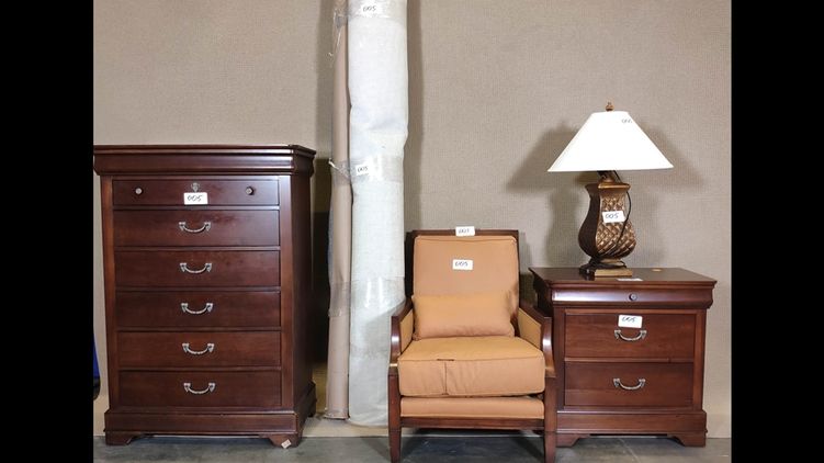 А за лот в составе комода, тумбочки, кресла, лампы и ковра назначена начальная цена 2200 грн.