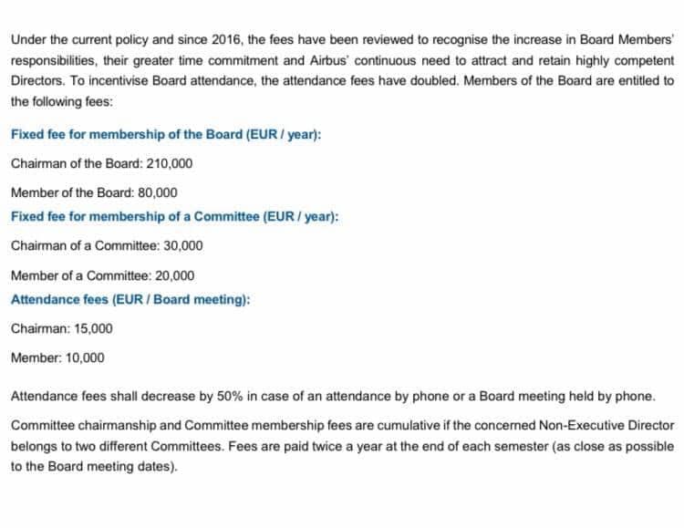 При условии 10 собраний в год, член совета директоров может выйти на зарплату в 200 тысяч евро в год. Это максимум. К примеру, Жан-Пьер Кламадье, член совета директоров Airbus, заработал примерно 120 тысяч евро в год.