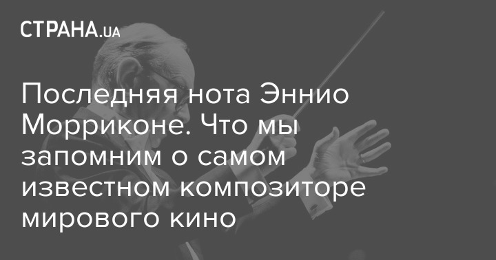 В Италии умер один из самых известных композиторов, писавших музыку к фильмам - Эннио Морркионе. Ему был 91 год.