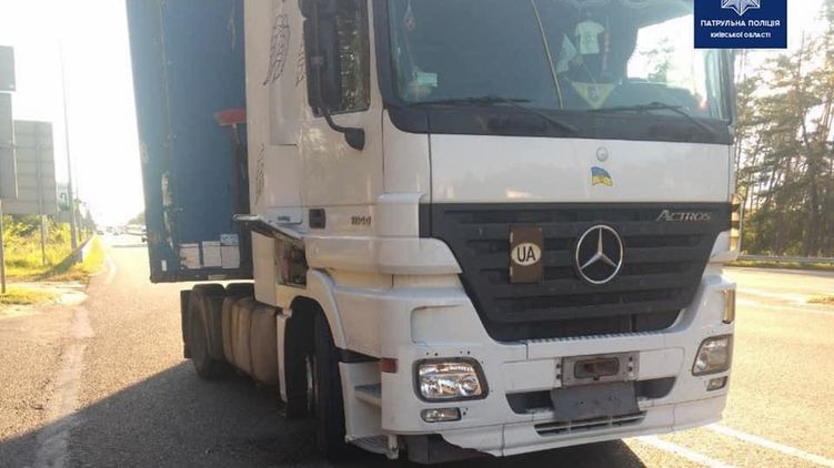 Отмечается, что грузовой автомобиль Mercedes-Benz, который двигался с нарушением ПДД, остановили патрульные на 36 км автодороги Киев - Чоп.