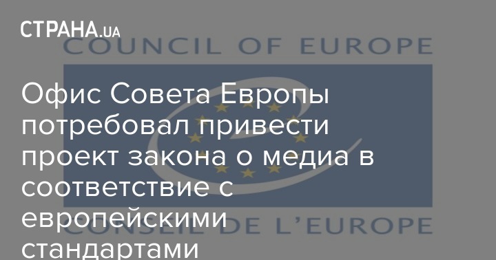 Офис Совета Европы в Украине потребовал гармонизировать законопроект №2693-д "О медиа" со стандартами Совета Европы и положениями Директивы ЕС об аудиовизуальных медиауслугах в соответствии с Соглашением об ассоциации.