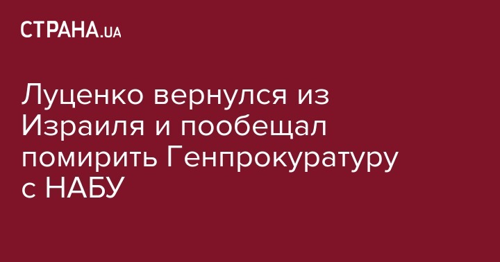Генеральной прокурор Юрий Луценко заявил, что вернулся из служебной командировке из Израиля и готов разобраться в противостоянии, которое возникло между ГПУ и НАБУ и сопровождалось взаимными видео-ударами. О проведении ряда встреч по этому вопросу и предстоящем брифинге Луценко написал на своей странице в социальной сети Facebook.
