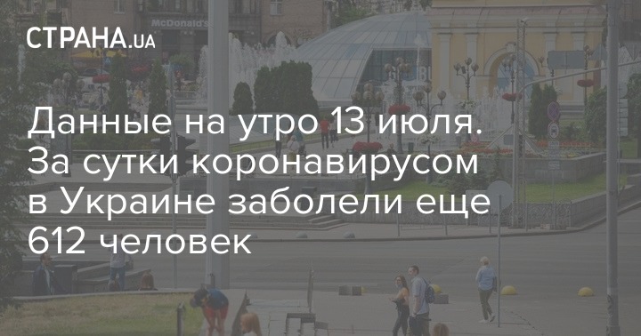 Данные на утро 13 июля. За сутки коронавирусом в Украине заболели еще 612 человек