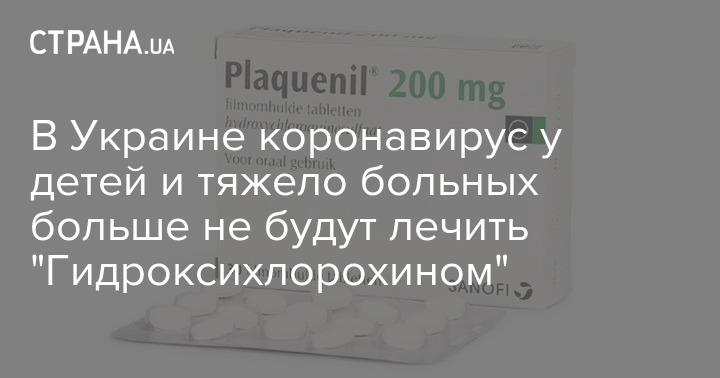 В Украине коронавирус у детей и тяжело больных больше не будут лечить "Гидроксихлорохином"