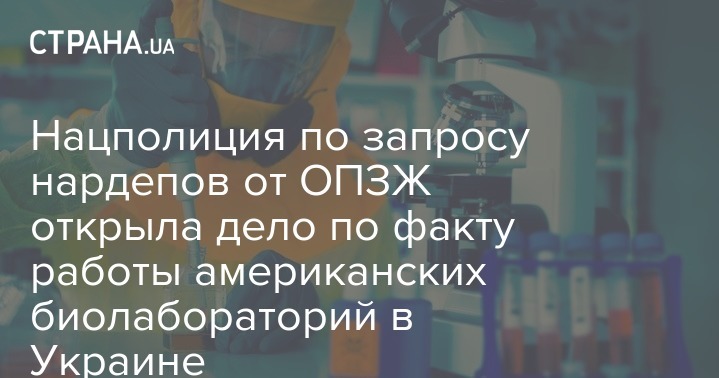 Нацполиция Украины возбудила уголовное дело по факту незаконного функционирования в Украине бактериологических лабораторий США по депутатскому обращению нардепов "Оппозиционной платформы - За жизнь" Виктора Медведчука и Рената Кузьмина.