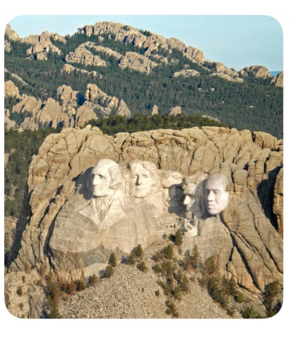 Включившийся в президентскую гонку рэпер Канье Уэст пустил в ход фотошоп и "нарисовал" свое изваяние на горе Рашмор рядом со скульптурными портретами президентов США: Джорджа Вашингтона, Томаса Джефферсона, Теодора Рузвельта и Авраама Линкольна.