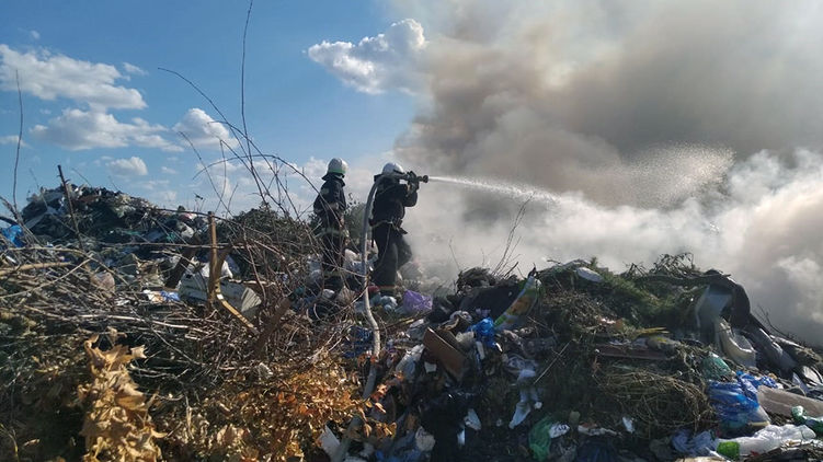 Пожарные продолжают тушить огонь на свалке в Павлоградском районе Днепропетровской области, который разгорелся до 200 квадратных метров.